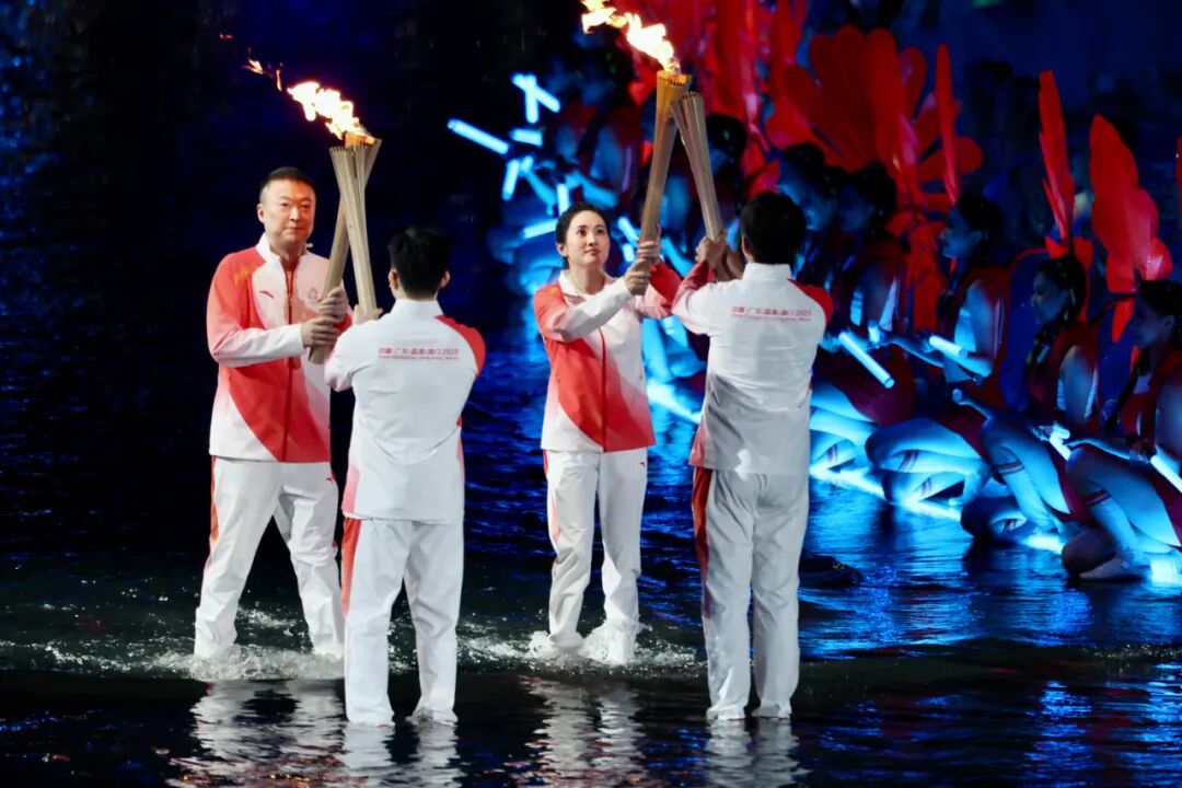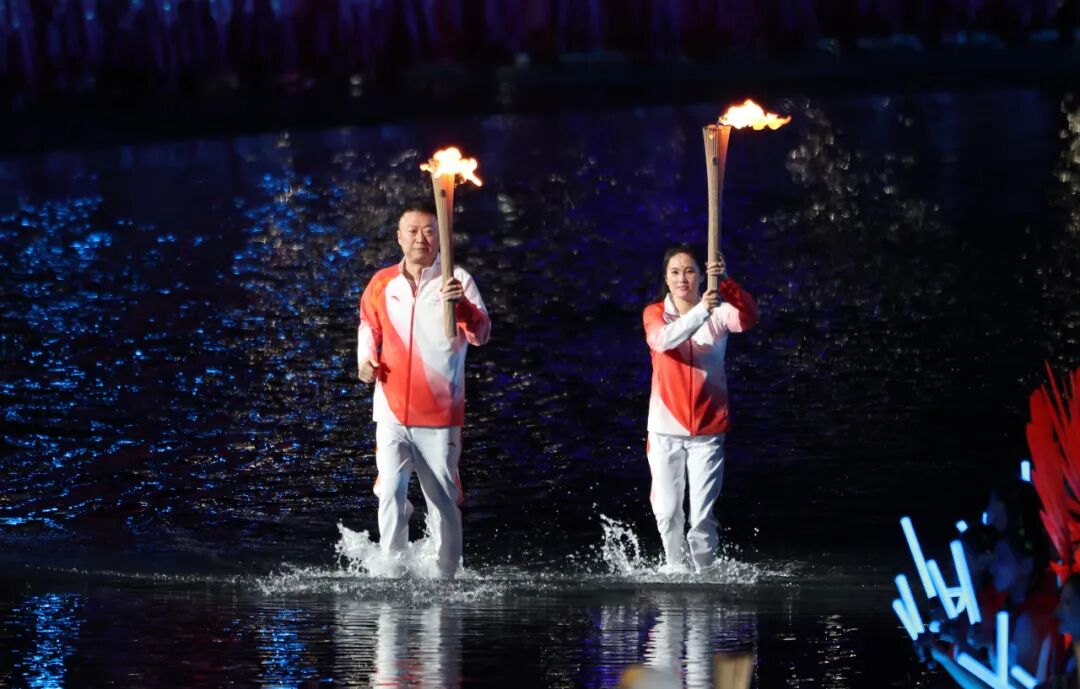 在开幕式现场进行了火炬传递,第一棒火炬手是曾获得乒乓球世界冠军的马琳和跳水世界冠军的陈若琳。